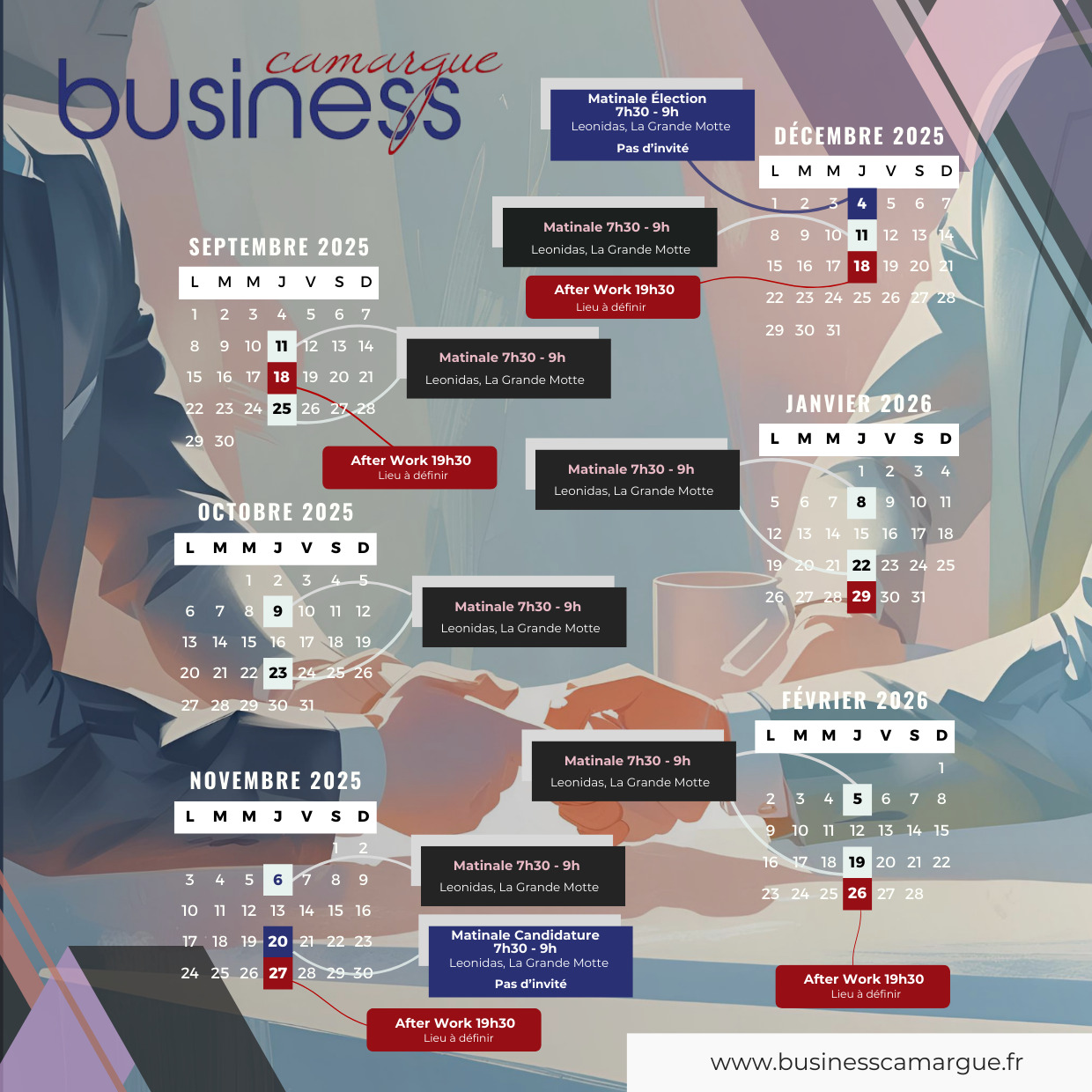 Business Camargue organise un "p'tit Dej" Café et Croissants une fois toutes les deux semaines, le jeudi à 7h30, suivi d'une Réunion de 7h45 à 8h45.